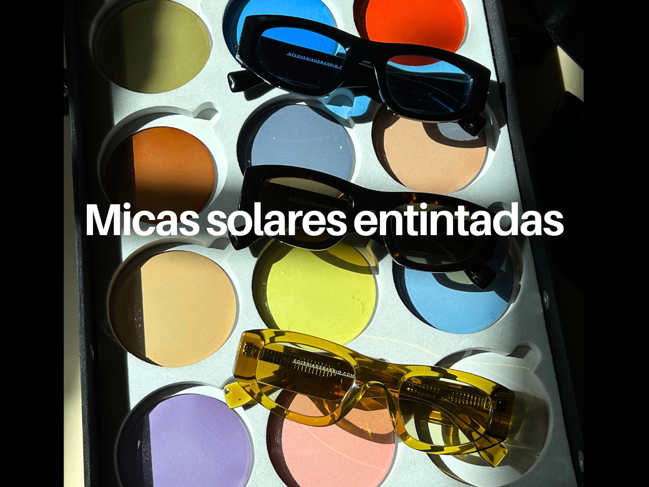 El color como expresión. Nuestras micas solares entintadas son la pincelada definitiva para tu look. Disponibles en una gama de tonos cuidadosamente seleccionados desde el clásico gris ahumado hasta el ámbar vibrante o el azul te permiten personalizar tu mirada y proyectar una imagen única.